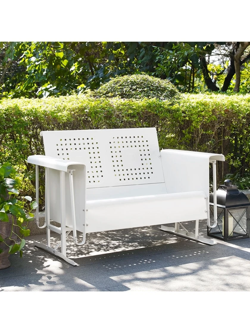 Glide back into lazy summer afternoons with the Bates Loveseat Glider. Constructed from strong steel and softly finished with a weather-resistant powder coating, this nostalgic glider provides rest and relaxation by the poolside or on the patio. Or, bring this iconic piece indoors to give the look of a perfect vintage fair find. Rock and sway with the smooth gliding mechanism and relax for summers to come.